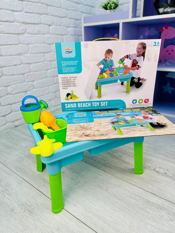 Артикул: 2105 Столик песочница - это отличный инструмент для развития ребенка 👧🧒. В процессе работы ребенок активно развивает мелкую моторику, повышает точность движений ✌️, улучшает сенсорно-звездное 👁️ восприятие. Компактный игровой столик содержит специальное углубление для песка🏝️ или воды💦. В комплекте представлены дополнительные игровые элементы, которые сделают игру интересной и увлекательной 😉 📍РАЗМЕР 43*29*25 см ▪️Столик отлично подойдет для игр с песком и водой. ▫️Легко моется 🧼 ▪️Ножки съемные ▫️в комплекте представлены формочки, лопатка, грабли и лейка.
