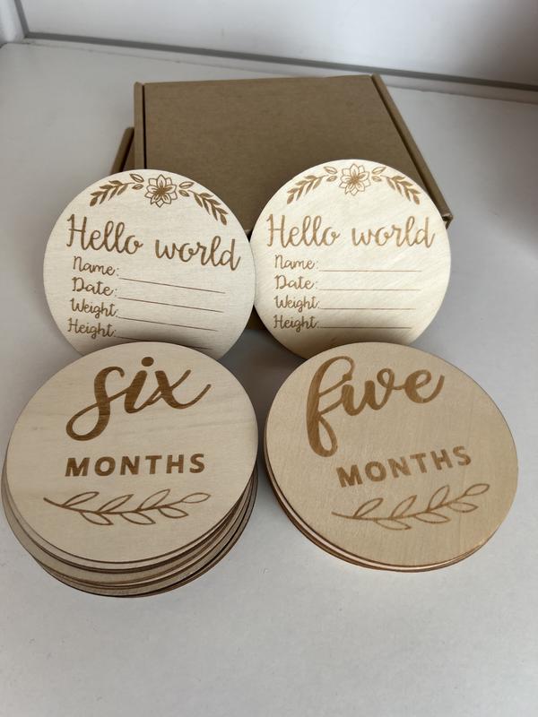 Деревянные таблички по месяцам • круглые - 355 грн / набор • цветочек, облачко - 400 грн / набор