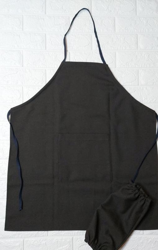 длина фартука 70 см ширина фартуха 60 см длина нарукавников 31- 32 см цвет - коричневый ткань плотная