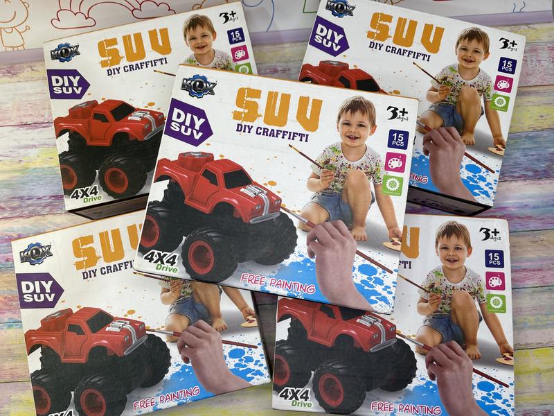 В наличии. Набор для творчества непременно понравится мальчику любого возраста. Набор содержит все необходимое для того, чтобы Ваш мальчик разрисовал для себя машинку по проявлению собственной фантазии. Размеры коробки: 25.5 см * 22 см * 7 см.