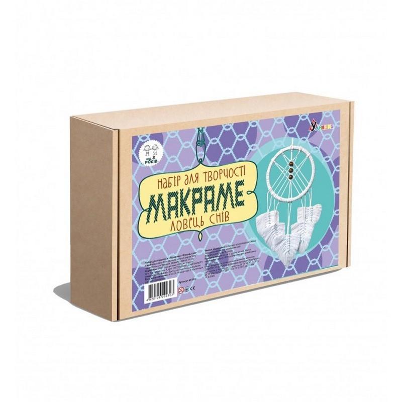 Описание Набор для творчества «Макраме »Ловец снов» Размер коробки ДхШхВ см -23,3х6,2х15,2. Диаметр ловца 14 см. В наборе: шнур для мараме, кольцо деревянное, бусины, инструкция. Для детей от 8 лет и старше.