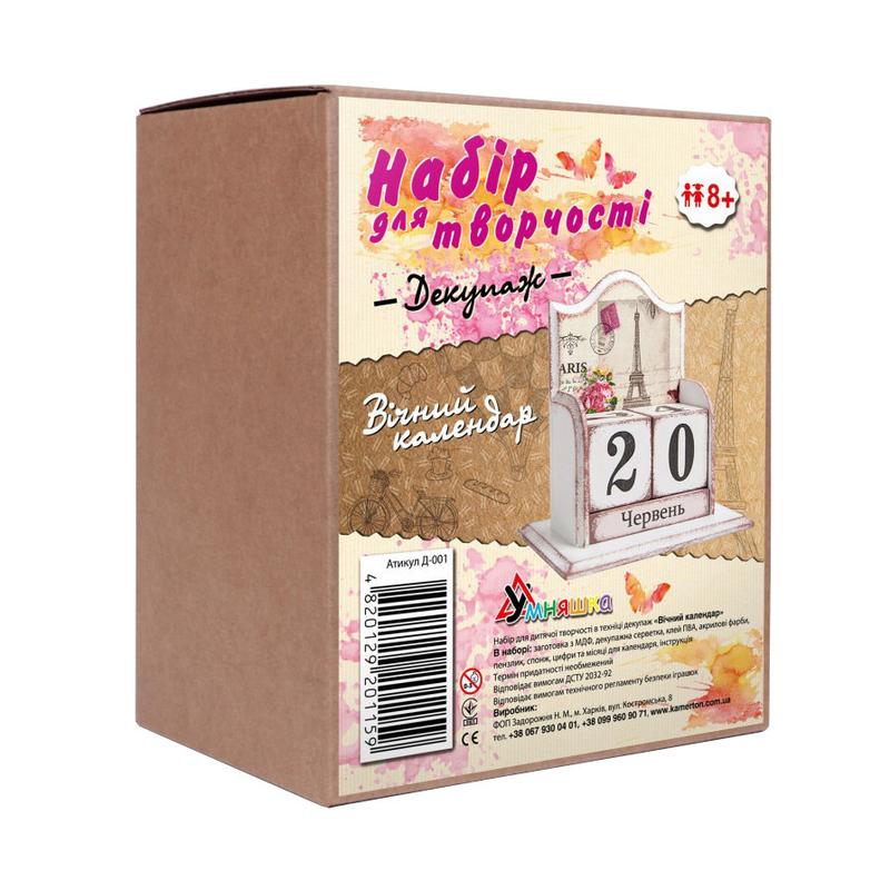 Дитячий набір для творчості. декупаж "вічний календар" (д-001) d-001 календар кубик