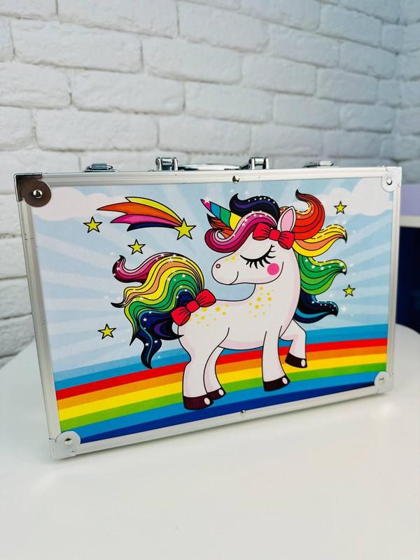 Мультинабор для рисования поможет ребёнку развить воображение, фантазию, моторику и творческое мышление. Это не просто игра -- это настоящий путь в мир искусства и самовиражения 🧑🎨👧 Набор из 145 предметов станет отличным подарком для детей и подростков, а также для тех, хто только начинает свой творческий путь. ✅ Преимущества: - Изготовлен из экологически безопасных материалов - Упакован в прочный алюминиевый кейс с защитными уголками и надёжными замочками 🔒 - Всё необходимое для творчества -- в одном месте! 🎨🖍️🖋️ 📦 Комплектация: - 28 цветных карандашей ✏️ - 2 простых карандаша - 4 кисточки разных размеров - 2 ластика - 1 точилка - 2 палитры 🎨 - 24 акварельные краски - 24 масляные краски - 24 пастели - 33 фломастера 📏 Размер кейса: 34×23×8,5 см ✨ Развивает творческие навыки, координацию движений, внимание и мышление