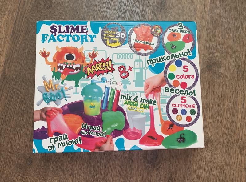 В наборі тільки те, що на фото, масу для слаймів потрібно докупити додатково. Залишилися підставка, мельничка для перемішування, три формочки-баночки для зберігання готових слаймів, деякий декор, блискітки, фігурки.