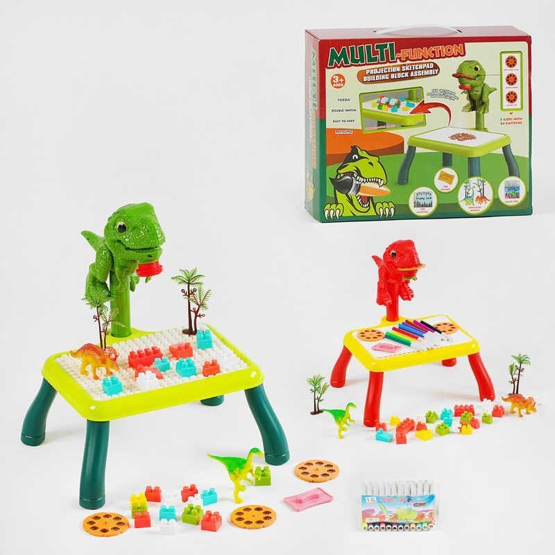 Приглашаем в мир творчества с динозавром! Загляните в гости к нашему юному динозавру-художнику, который теперь имеет в своем арсенале настоящий проектор. Этот чудесный прибор позволяет детям наслаждаться яркими картинками и учиться рисовать! Наш игровой столик - это настоящая лаборатория креативности, где каждый сможет найти свою музу. Здесь вы найдете: - Набор для творчества с множеством развлечений. - Маленький конструктор для развития моторики рук. - Мини-альбом и фломастеры для рисования. - Разнообразные фигурки динозавров для веселых игр. - Проектор в форме динозавра, работающий от двух батареек типа "АА" (не входят в комплект). В комплекте также есть 3 диска, которые содержат 24 яркие картинки животных, овощей и еды. Включайте проектор, собирайте столик и готовьтесь к незабываемому вечеру, полному веселья и творчества!