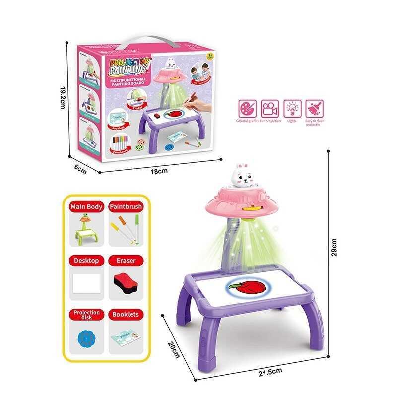 Ваш ребенок — маленький художник! Проектор для рисования "Зайчик" ZF 1004 M (60) — это идеальный спутник для юных творческих умов. Благодаря яркой проекции рисунков на столе, ваш ребенок сможет легко раскрашивать их фломастерами, проявляя свою фантазию и художественные таланты. Комплект включает цветные фломастеры, которые позволяют добавить ярких оттенков к каждому изображению. Этот увлекательный процесс не только приносит радость, но и способствует развитию мелкой моторики и координации движений! Кроме того, проектор помогает детям развивать творческое мышление и познавательные навыки. Основные характеристики: - Проекция картинок для творчества на столе; - Работает от 3 батареек типа "AAA" (батарейки не входят в комплект); - Легко очищается; - Включает цветные фломастеры, губку для стирания, буклет и диски с картинками для проекции; - Стимулирует развитие мелкой моторики и творческого мышления; - Изготовлен из безопасного и прочного пластика; - Рекомендуется для детей от 3 лет.