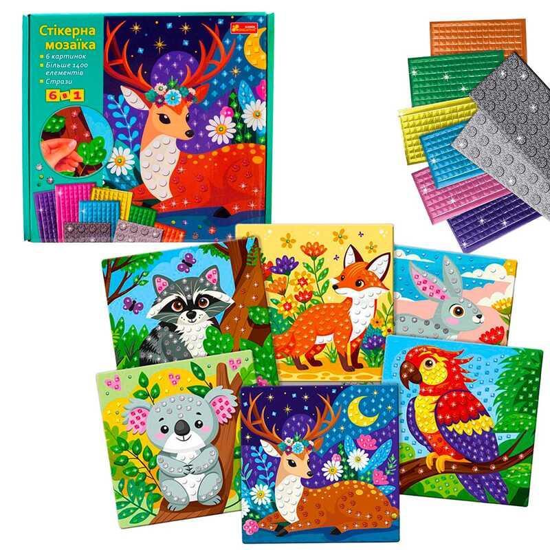 Набір для творчості з наліпками «Стікерна мозаїка» Цей великий набір 10100678У пропонує дітям створити яскраві мозаїчні картини за допомогою понад 1400 блискучих наліпок. У комплект входить 6 різноманітних картинок із зображеннями тварин, які допоможуть розвивати дрібну моторику, увагу та творче мислення. - 6 картинок із милими тваринами - Понад 1400 наліпок різних кольорів і форм - Яскраві стрази для додаткового блиску - Зручна упаковка для зберігання - Ідеально підходить для дитячого розвитку і творчого дозвілля