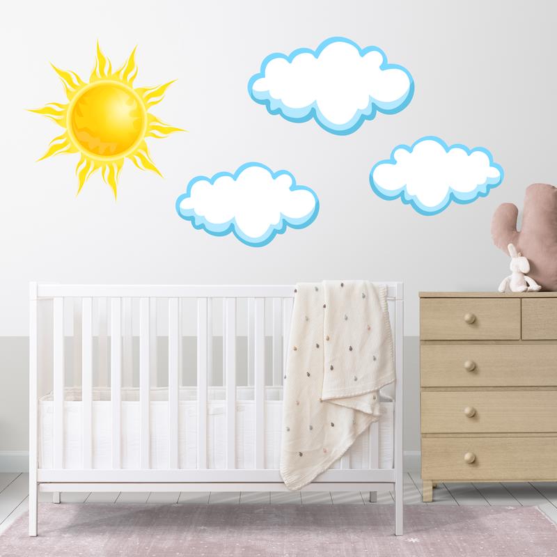 Набор наклеек на стену в детскую комнату "солнце и облака" (4 элемента)