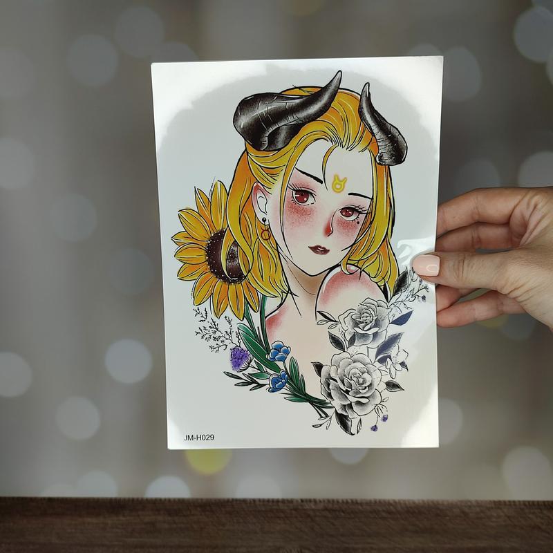 Временная татуировка, фальшивое тату на тело "девушка с подсолнухом. телец" (тату0040)