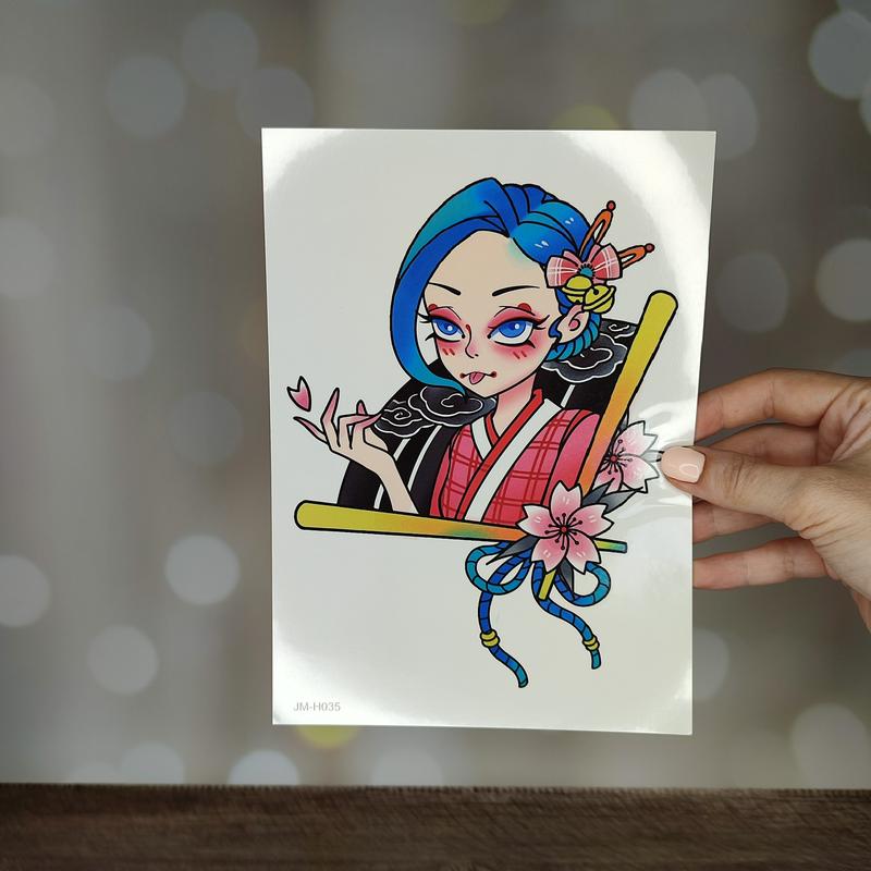 Временная татуировка, фальшивое тату на тело "девушка с голубыми волосами" (тату0044)