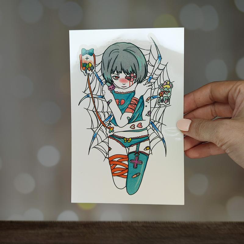 Временная татуировка, фальшивое тату на тело "девушка в паутине" (тату0067)