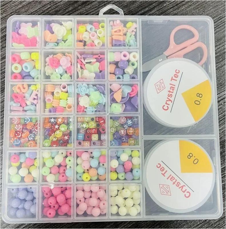Фантазия в сочетании с креативностью позволяют собственноручно создавать уникальные украшения из сотен маленьких бусин. Здесь симфония цветов и разнообразие форм сливаются вместе, образуя произведение искусства, полного удивительной красоты и неповторимости. Юная мастерица сможет окунуться в увлекательный процесс плетения и насладиться непревзойденностью полученного результата, который станет прекрасным дополнением любого образа девочки. Особенности: - удобный пластиковый бокс-органайзер; - большое разнообразие бусин разных цветов и форм; - в комплекте представлены безопасные ножницы и пинцет; - для плетения браслетов к набору прилагается леска; - фурнитура в золотом оттенке; - бусины изготовлены из качественного первичного пластика. Размер упаковки:19см ×20 см × 2 см Упаковка:Коробка Возраст:от 6 лет