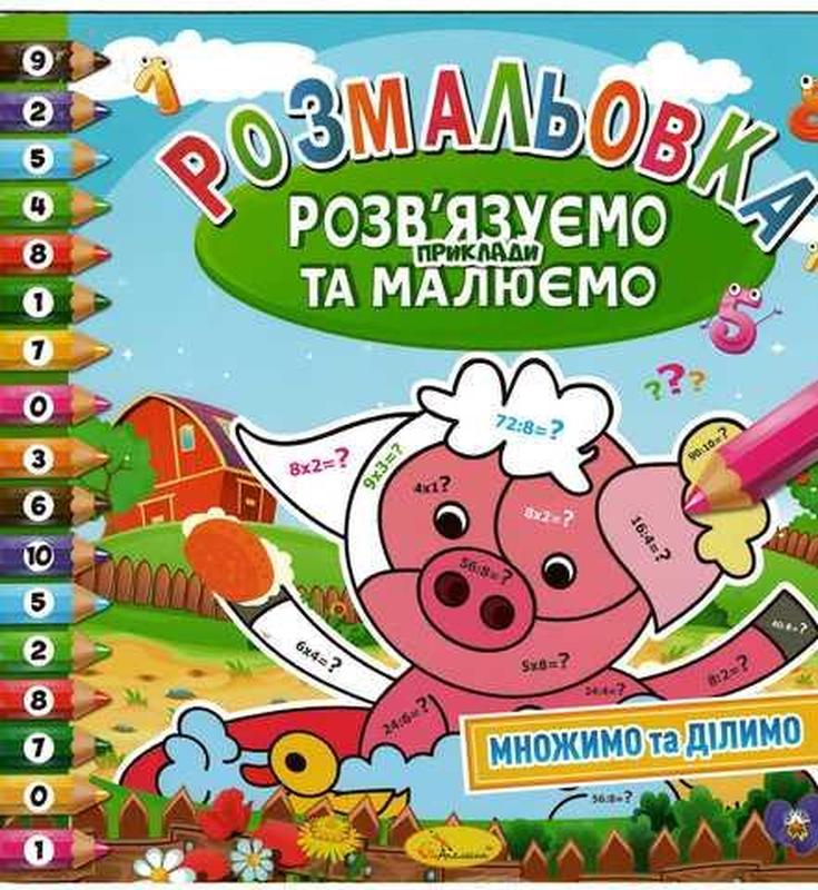 Розмальовка "Вирішимо приклади та малюємо" "Умножуємо і ділимо", 8 сторінок Увага. Виробник залишає за собою право змінювати комплектацію, колірну гаму та характеристики товару без попереднього повідомлення. .