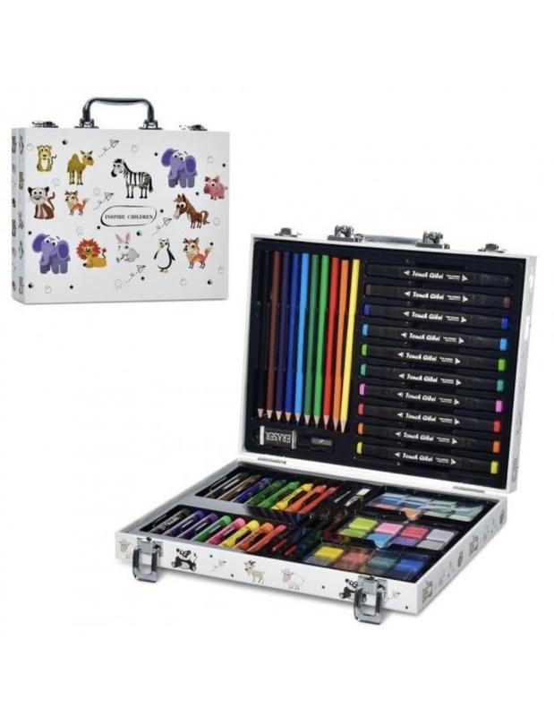 Детский набор для рисования и творчества в металлическом кейсе!! Для детей от 3 лет! • Карандаши • Фломастеры • Краски • Крейди • Пастель Набор для рисования подойдет мальчику и девочке. Все предметы компактно складываются в удобный чемоданчик. В наборе: фломастеры двусторонние - 10 цветов карандаши цветные - 10 цветов фарби - 24 кольори масляный мел - 8 цветов пастель - 8 цветов точилка, резинка, кисточки Цена 580 грн