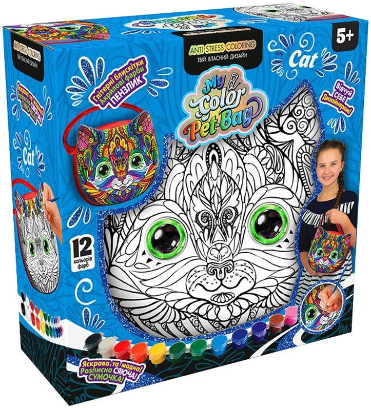 Сумка -- раскраска для девочек от фирмы Danko Toys новинка в нашем онлайн -- магазине. Набор для творчества My Color Pet-Bag дает девочкам возможность создать неповторимую вещь своими руками -- просто нужно проявить фантазию и раскрасить сумочку, дать ей высохнуть, а затем можно идти и удивлять подружек. Возьмите краски и сумочку с нанесенными контурами рисунка и просто раскрасьте ее как раскраску! Рисунок выполнен в технике Antistress. Раскрашивать сумку можно как показано на упаковке, либо на свое усмотрение. А добавив глиттер в акриловый лак, Вы сможете декорировать любые закрашенные элементы на рисунке, придавая сияющий блеск своему творению. Почувствуйте себя дизайнером!Создайте оригинальную сумку с собственным дизайном! В наборе: сумочка, 12 акриловых красок, кисточка, блестки глиттер, акриловый лак на водной основе, инструкция. Размер коробки 24 * 10 * 25 см.