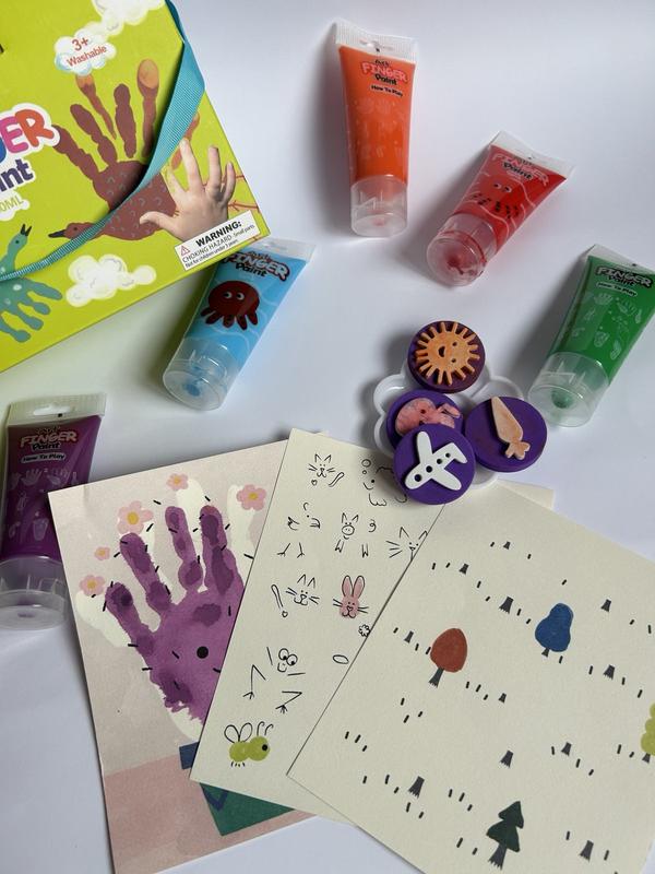 Рисование пальчиками – увлекательный процесс, позволяющий детям и взрослым воплотить свои фантазии и идеи на холсте или бумаге, используя свои собственные пальцы в качестве кисти. В набор входит: 6 ярких баночек с красками; 🔵8 штампов; палитра (для смешивания красок); фартушек; 🔴8 карт для рисования. Более того, набор "Рисируем пальчиками Tookyland" создан с учетом безопасности и качества. Пальчиковые краски не токсичны и легко смываются с кожи и вещей, что делает его идеальным выбором для детей.