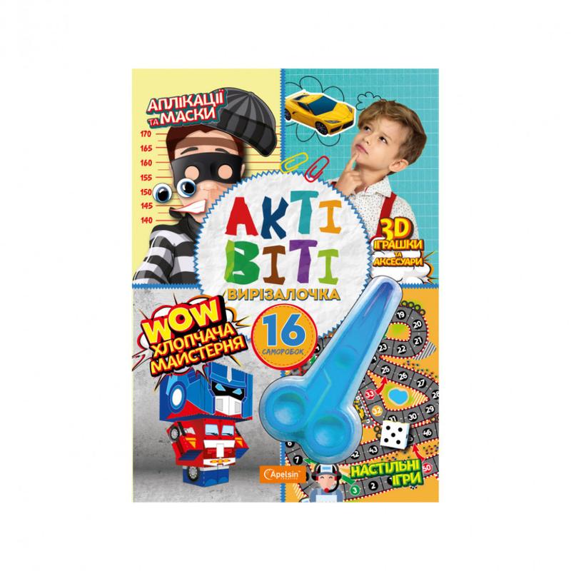 Батьки можуть гратися з дітьми і створювати круті саморобки весело та просто: вирізати вже готові елементи й послідовно дотримуватися інструкції. Нічого не треба придумувати, або шукати додаткові деталі чи матеріали, просто вирізати, згинати, приклеювати, гратися. Для діток в допомогу вже є зразок-підказка готового виробу, при потребі паперові заготовки можна наклеїти на картон. Яскраві безпечні ножиці вже є в наборі. Батьки будуть у захваті наскільки легко їх діткам сподобається створювати дивовижні речі власноруч, при чому вони справляться з цим навіть без допомоги дорослих! Готовими саморобками можна весело гратися, або прикрасити кімнату, а можна зробити друзям та рідним подарунок своїми руками чи поповнити твою колекцію саморобок. В будь-якому випадку, дітям сподобається творчий процес і вони будуть задоволені результатами своєї роботи. Більшість дітей та підлітків полюбляють створювати цікаві речі своїми руками. Додайте "АКТІВІТІ-ВИРІЗАЛОЧКУ" до свого ассортименту, адже це справжня творча майстерня! Використовуючи безпечні, спеціальні дитячі ножиці з набору, дитина не поріжеться, тому саморобки з "АКТІВІТІ-ВИРІЗАЛОЧКИ" можна виготовляти з раннього віку, як тільки малюк навчиться тримати в руках ножиці.