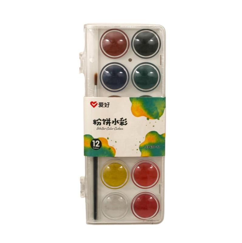 Акварель для малювання AIHAO, 12 кольорів. Пензлик в наборі. Упаковка - пластиковкий пенал.