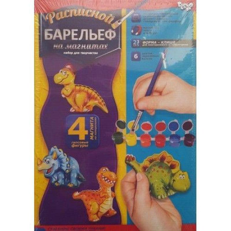 Набір для творчості, розписний гіпсовий барельєф на магнітах, "динозаври"
