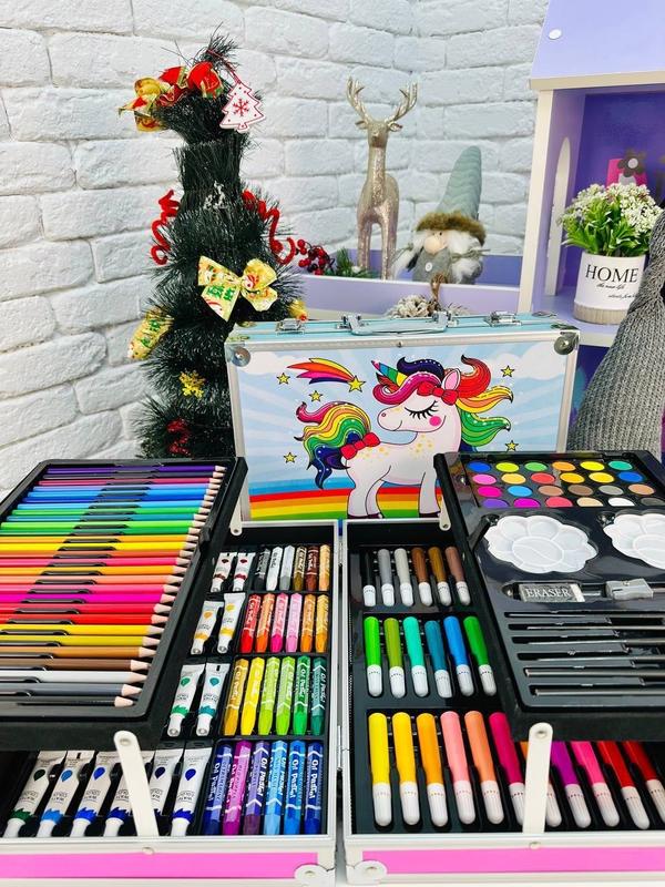 Набор для рисования 145 предметов в алюминиевом чемодане Единорог) Отлично подойдет на подарок)