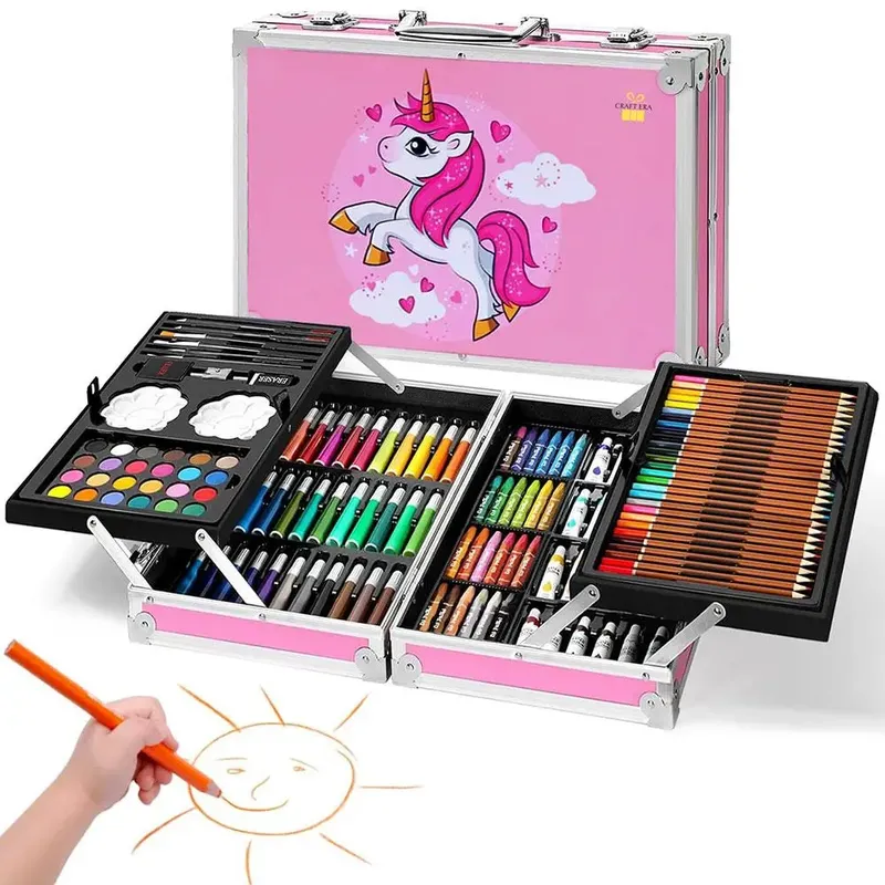 Набір для малювання 145 предметів, у валізі / великий набір для творчості для дівчинки