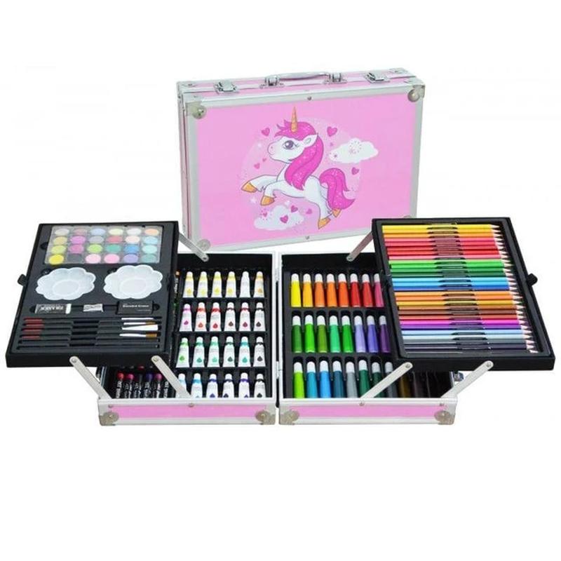Набор для рисования в алюминиевом чемодане единорог 145 предметов, розовый