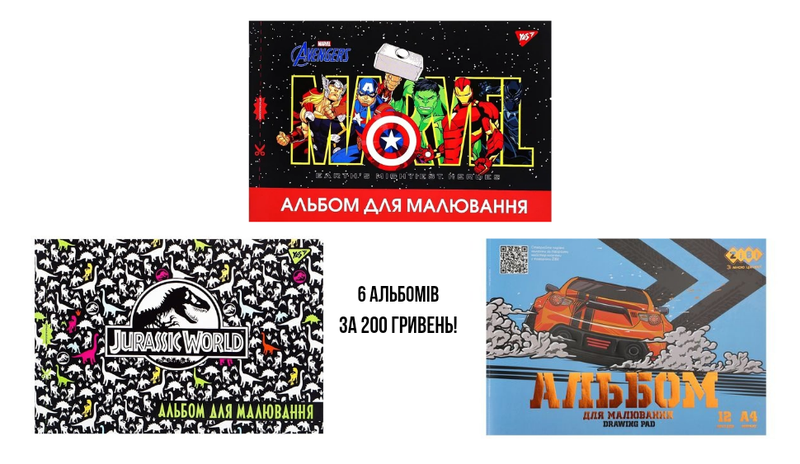 Альбомы для РИСОВАНИЯ А4 : DRAWING PAD 12 листов - 2 шт MARVEL 28 листов - 1 шт JURASSIC WORLD 28 листов - 3 шт Цена за все альбомы 200 грн