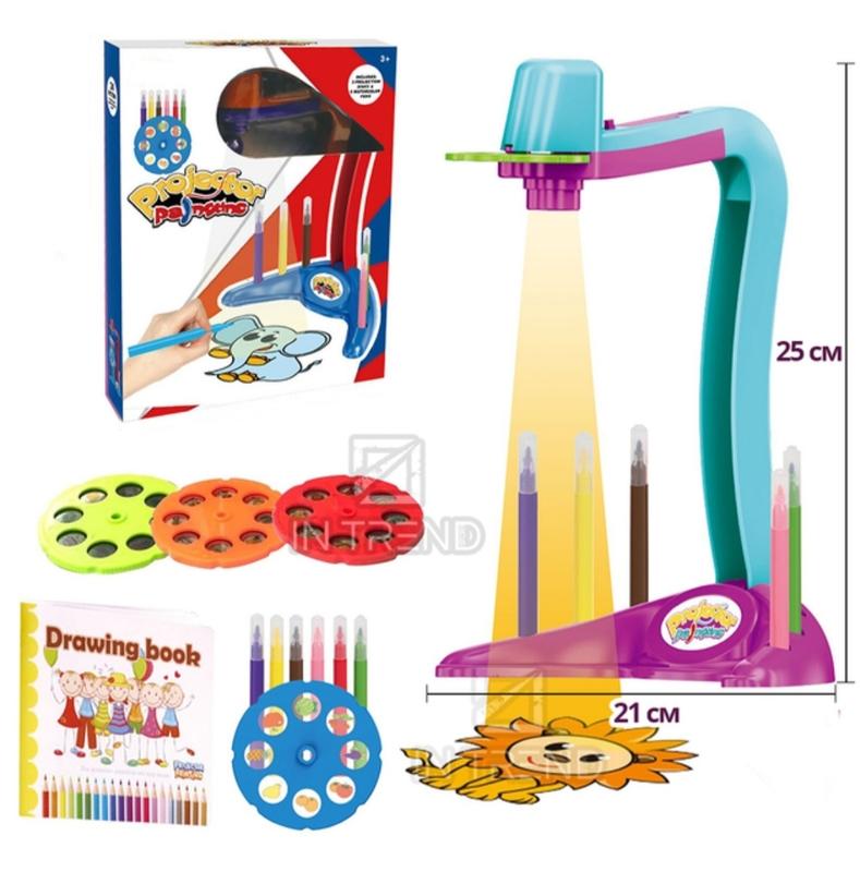 детский проектор для рисования, также известный как Projector Painting. Назначение: Развивает мелкую моторику, творческое мышление и воображение у детей дошкольного и младшего школьного возраста. Принцип работы: Проецирует изображения со слайдов на поверхность, которую ребенок может обводить и раскрашивать. Комплектация: Обычно включает проектор, слайды с различными изображениями (например, фрукты, животные, транспорт), фломастеры или карандаши, и блокнот для рисования. Преимущества: Помогает детям научиться аккуратно рисовать, распознавать формы и цвета, а также стимулирует их креативность. Безопасность: Изготовлен из безопасных материалов, имеет гладкие края и поверхности, чтобы не травмировать руки ребенка во время игры.