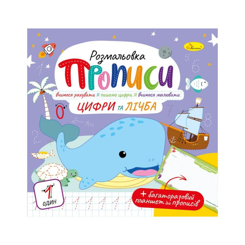 Розвивальна розмальовка "прописи цифри і рахунок" рм-60-06 з багаторазовим планшетом