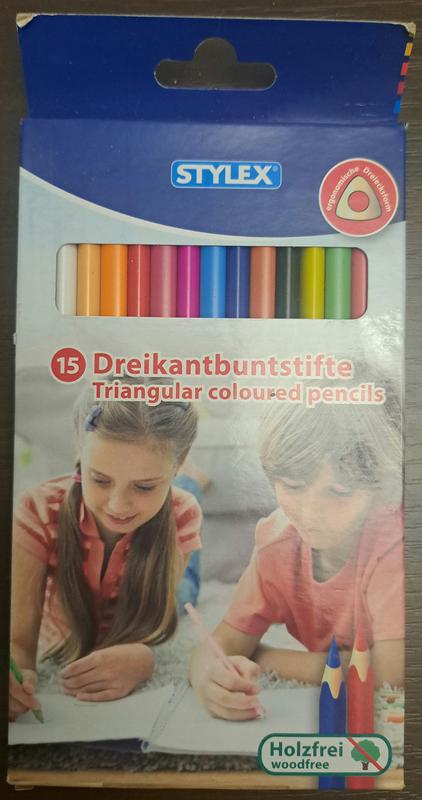 олівці Stylex. Кількість олівців: 15 штук. Форма олівців: трикутна (ергономічна). Особливості: виготовлені без використання дерева (Holzfrei/woodfree).