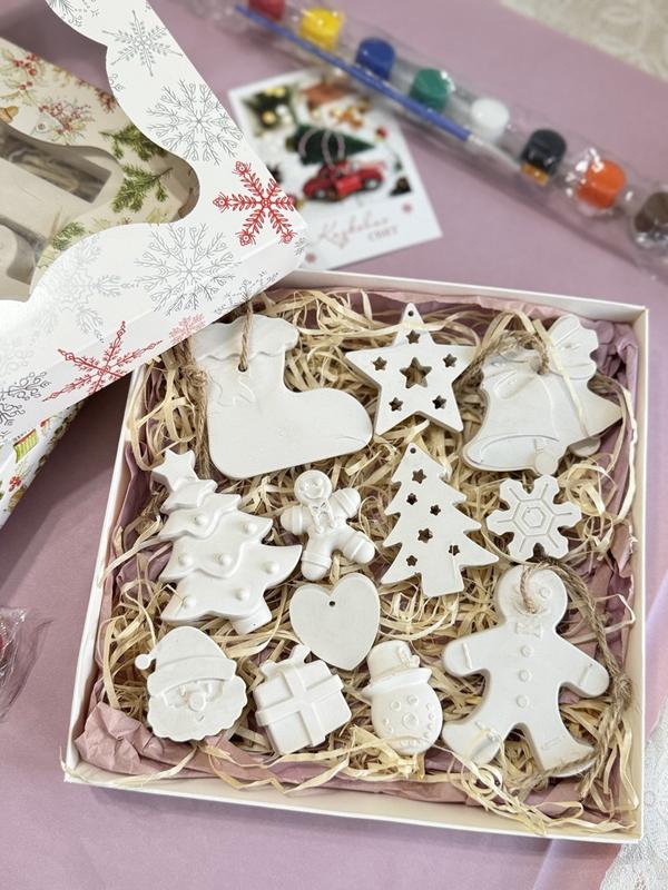 Набор гипсовых фигурок, рождественская тематика. фигурки разные: есть магниты, подвески и обычные. Краски в наборе! В подарочной коробке! цены: ✅коробка 20*20 -210грн ✅коробка 13*13 120грн можно приобрести отдельно фигурки без подарочной упаковки и красок от 8 грн до 20 шт. Минимальная сумма заказа 115 грн