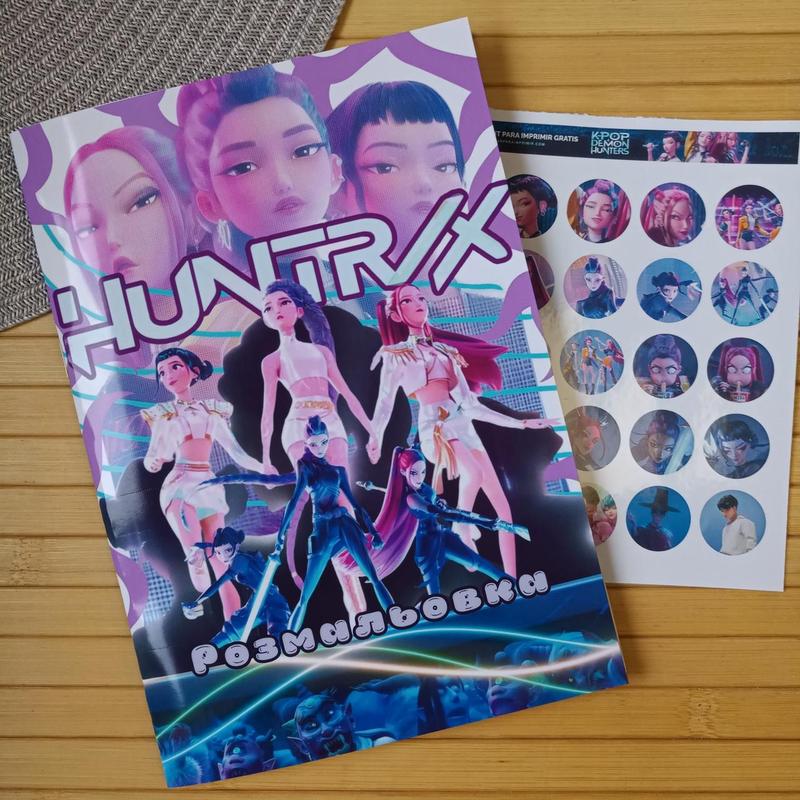 Розмальовка (формат А5) 8 зображень + стікерпак Анімаційний фентезійний музичний фільм сюжет якого розповідає про вигаданий кейпоп-гурт дівчат під назвою Huntr/x, учасниці якого ведуть подвійне життя -- зірок сцени вдень і мисливиць на демонів уночі. Їм доводиться протистояти суперницькому бойз-бенду Saja Boys, чиї учасники насправді виявляються демонами.