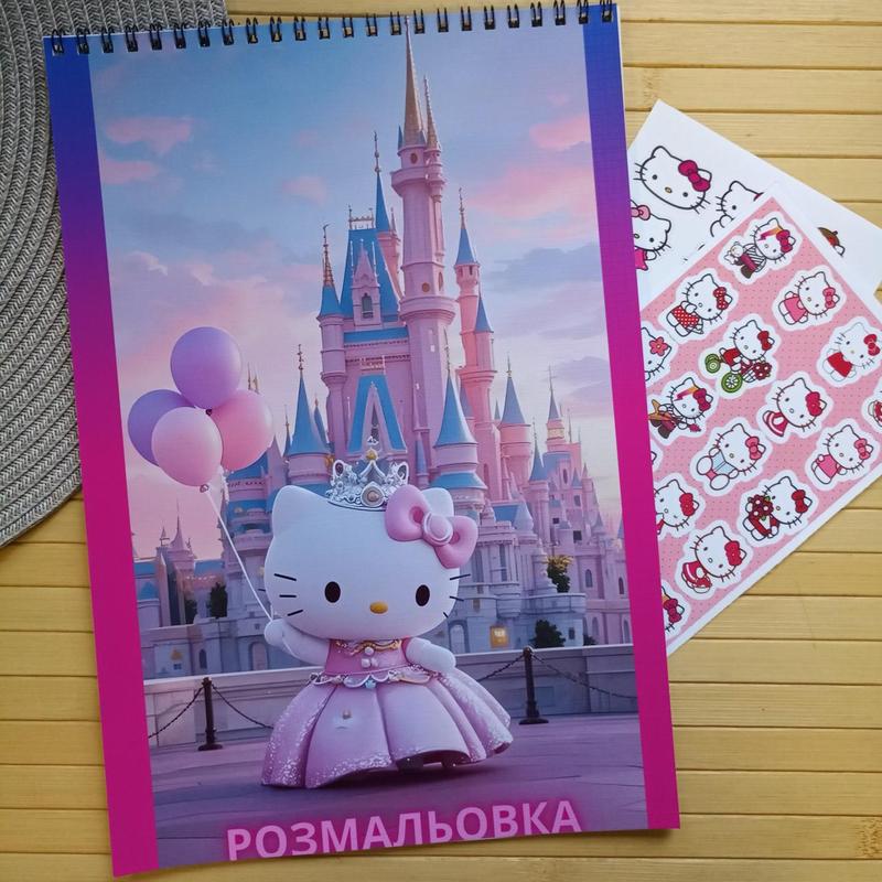 Розмальовка Hello Kitty Хелоу Кити (формат А4) Hello Kitty (від англ. «Привіт, киця») -- персонаж японської попкультури, маленька біла кішечка в спрощеному малюванні. Придумана компанією Sanrio в 1974 році і стала своєрідним мемом.