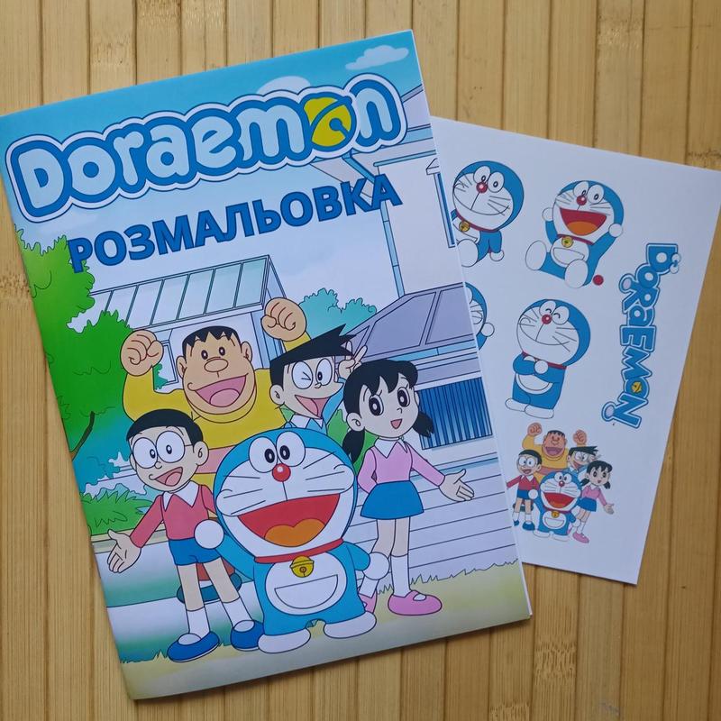 Розмальовка (формат А5) Doraemon Дораемон стікерпак у подарунок «Дораемон» (яп. ドラえもん) -- кодомо-манґа, створена манґаками Фуджіко Фуджіо. Згодом -- аніме-серіал. Сюжет оповідає про кота-робота на ім'я Дораемон, що перемістився в часі з XXII століття, щоб допомогти ледачому школяру Нобіті Нобі прожити менш нещасне життя і поліпшити майбутнє його нащадків. Під усіма цими дораемоновськими гаджетами з майбутнього, життя Нобіти вже точно ніколи не буде таким, яким було досі.