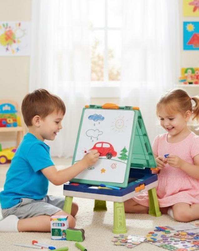 🎨🖼️Двусторонний мольберт с удобной рабочей поверхностью, где одна сторона предназначена для рисования мелом, а другая – для стирающего маркера, подойдет для маленьких творческих натур. 💥Рисование мелом и маркерами прекрасно развивает воображение, мелкую моторику, логику, цветовое восприятие и память. Представленная в ярком исполнении модель вызовет у каждого ребенка массу положительных эмоций.