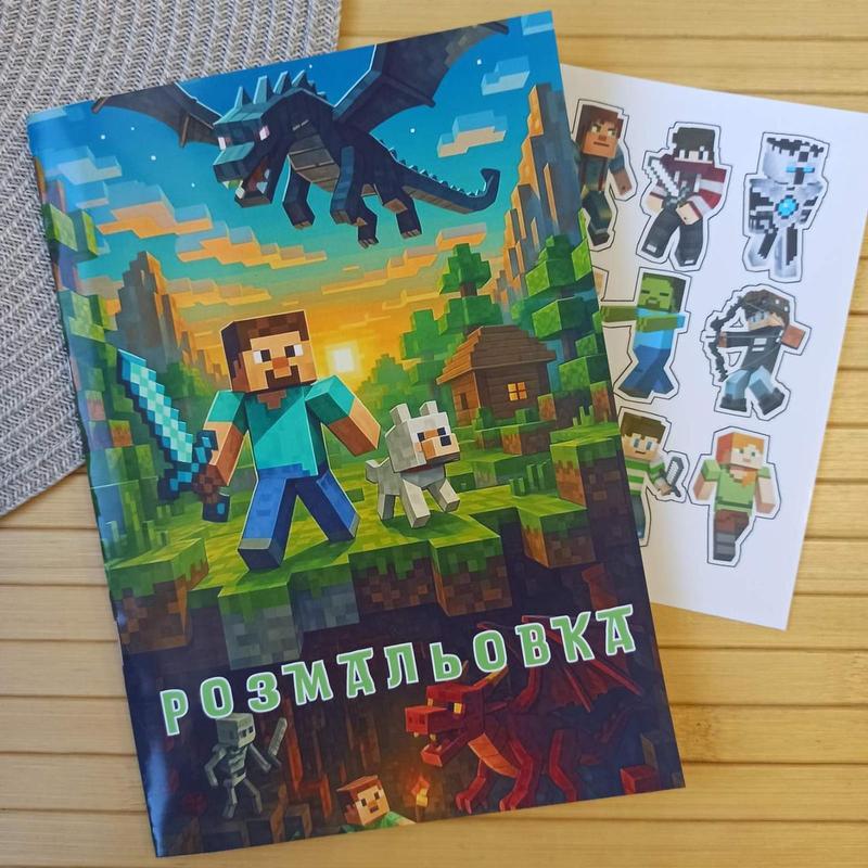 раскраска форматом А5, 8 изображений Minecraft — видеоигра в жанре песочницы в открытом мире с взглядом от первого/третьего лица, разработанная и изданная Mojang Studios в 2011 году. Игра основала одноименную серию, для всех произведений которой характерен минималистичный кубический дизайн