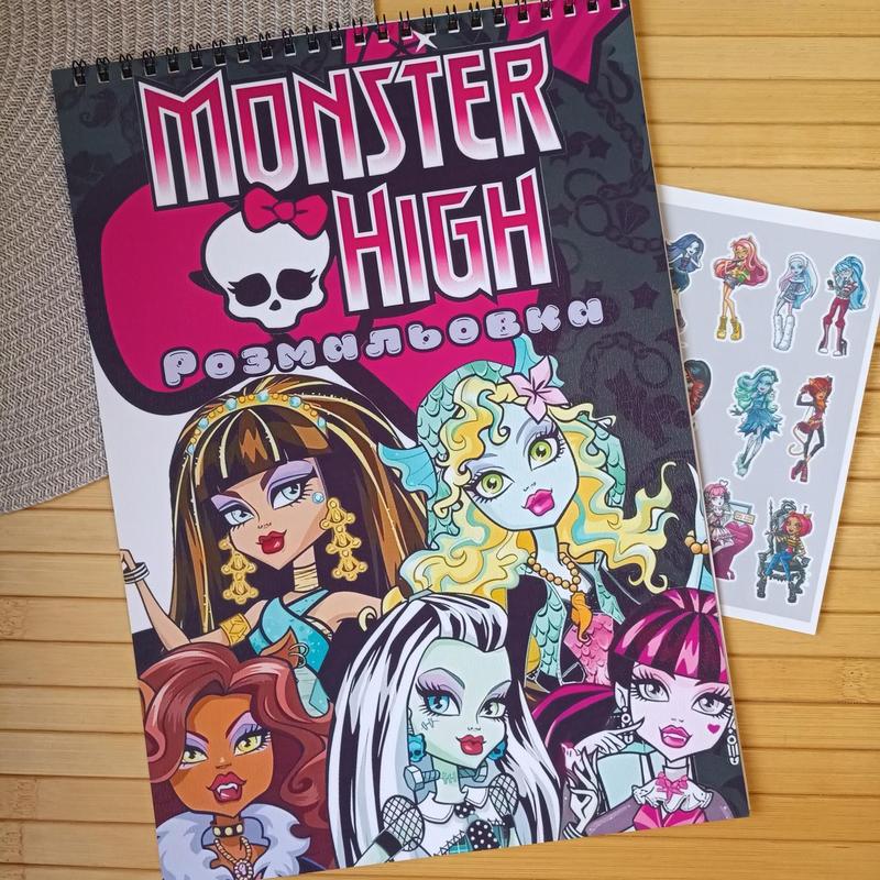 Раскраска Monster High Монстер Хай (формат А4) 8 зображень + стікерпак Мо́нстер Хай, «Школа монстрів» (англ. Monster High) -- американська серія фешн-ляльок, створена Ґарретом Сендером, ілюстрації Келлі Райлі. Офіційний реліз відбувся в липні 2010 року. Персонажі цієї серії навіяні фільмами жахів і класичними історіями про чудовиськ, що виокремлює Monster High з-поміж інших фешн-ляльок. У світі Монстер Хай багато персонажів з різними характерами, звичками, походженням та зовнішнім виглядом.