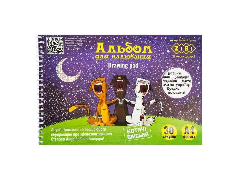 Альбом для рисования 30арк. patriot cat army, а4, 120г/м2 на пружине, серебряный, kids lin...