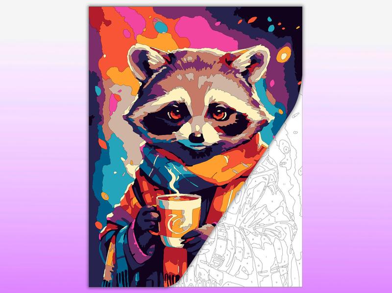 Раскраска по номерам, цифрам для детей и взрослых "енот с какао"