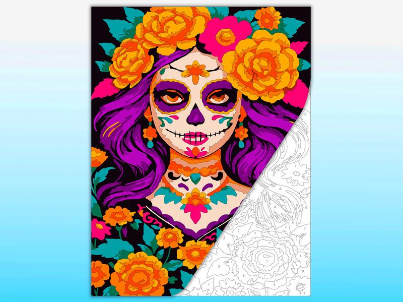 Раскраска по номерам для детей и взрослых "катрина день мёртвых"