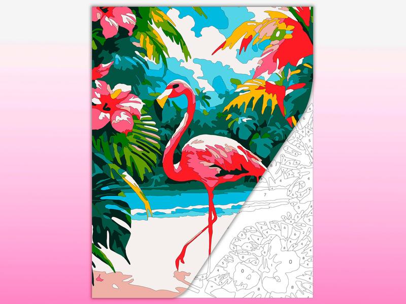 Раскраска по номерам для детей и взрослых "фламинго в тропиках"