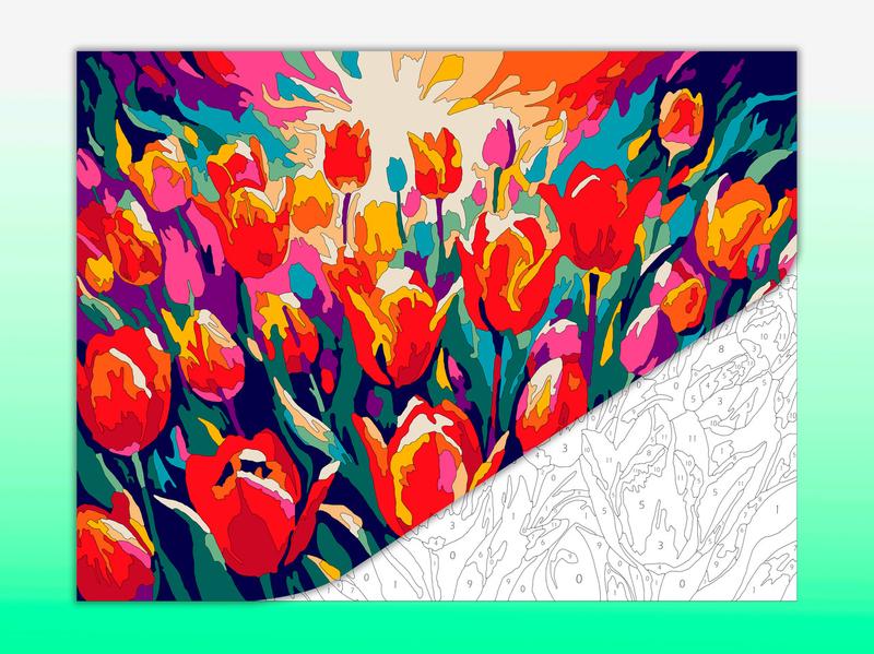 Раскраска по номерам для детей и взрослых "красочные тюльпаны"