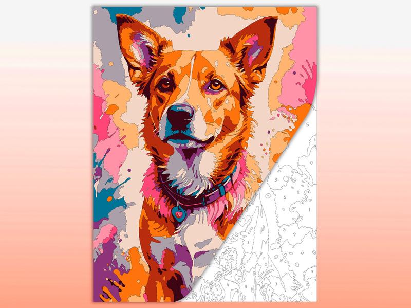 Раскраска по номерам для детей и взрослых "акварельная собака"