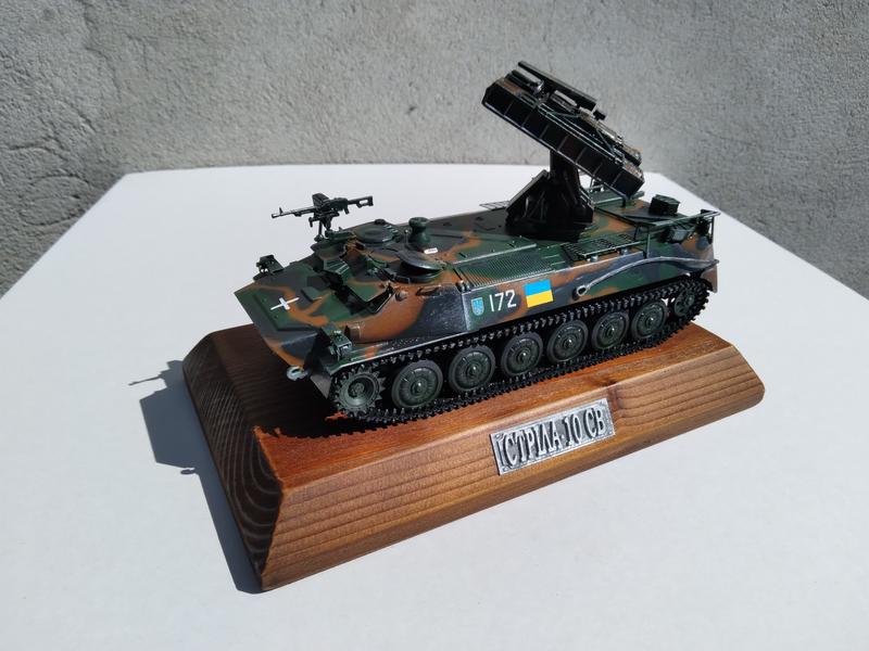 Стрела-10СВ (индекс ГРАУ -- 9К35, по классификации МО США и НАТО -- SA-13 Gopher, (рус.¦Суслик)) - зенитно-ракетный комплекс. Комплекс предназначен для визуального наблюдения и уничтожения воздушных целей на малых высотах. Комплекс предназначен для визуального наблюдения и уничтожения воздушных целей на небольших высотах. Масштаб модели 1:35. Размеры модели: длина - 205 мм, ширина - 80 мм, высота - 95 мм. Готовая модель с нанесенным камуфляжем