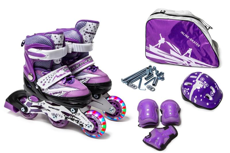 Женственный, красивый и невероятно практичный Комплект "Happy Mondays" станет прекрасным сюрпризом для девочки. Выгодность приобретения - в том, что Вы одновременно получаете не только ролики, но и стильный шлем и защиту для коленей, локтей и ладоней. Лаконичный дизайн и универсальная девичья расцветка делают данную модель идеальной для подарка юной гонщице. Покупать Комплекты "Happy Mondays" можно как начинающим роллерам, так и подросткам, которые уже давно и уверенно стоят на роликах. Описание и преимущества Комплекта "Happy Mondays": - торговая марка "Happy Mondays"; - стелька 20,5-23,5 см - надежное закрепление стопы и безопасность - за счет пяточного ремня и бакли AUTОLOCK; - воздухопроницаемость и комфорт - комбинация мягкого кожзама и "сеточки" в основе ботинка; - в комплекте роликов - специальная система торможения; - правильная посадка и ортопедический эффект - оболочка и манжета из полипропилена; - в основе роликов - прочная алюминиевая рама (шасси); - надежные и качественные подшипники ABEC-7; - возможность регулировки на 4 полных размера - кнопочная система; - бесшумные и легкие PU-колеса из полиуретана (размер 64*24 мм, жесткость 82А); - набор осей для изменения положения колес. - стильная расцветка: фиолетовый с комбинацией белого. Купить Комплект "Happy Mondays" и получить отличный спортивный снаряд для физического развития и прекрасного настроения