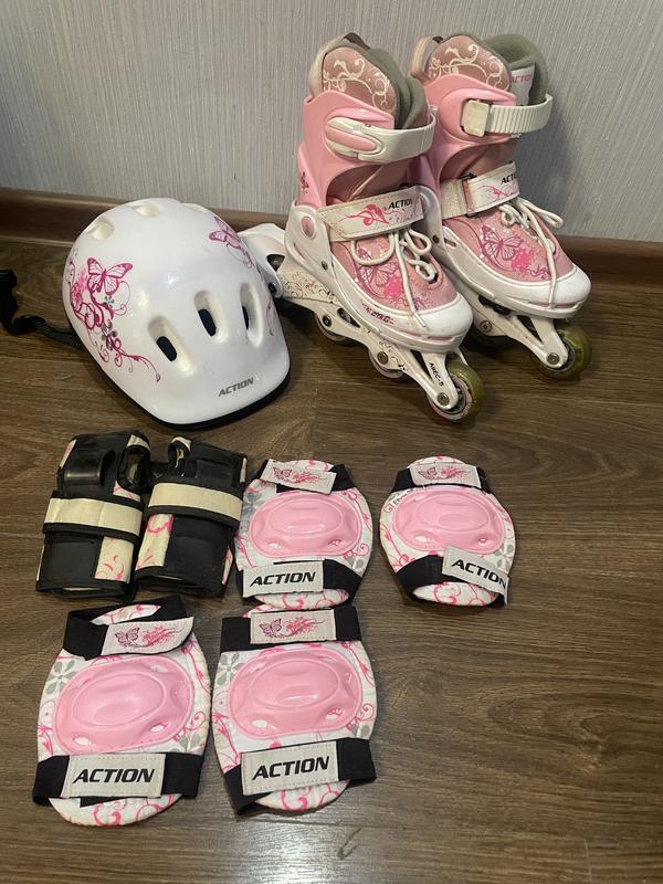 Продам детские ролики в хорошем состоянии на размер 33-35 В комплекте полностью целую защиту и заводской пакет Колеса на роликах с подсветкой