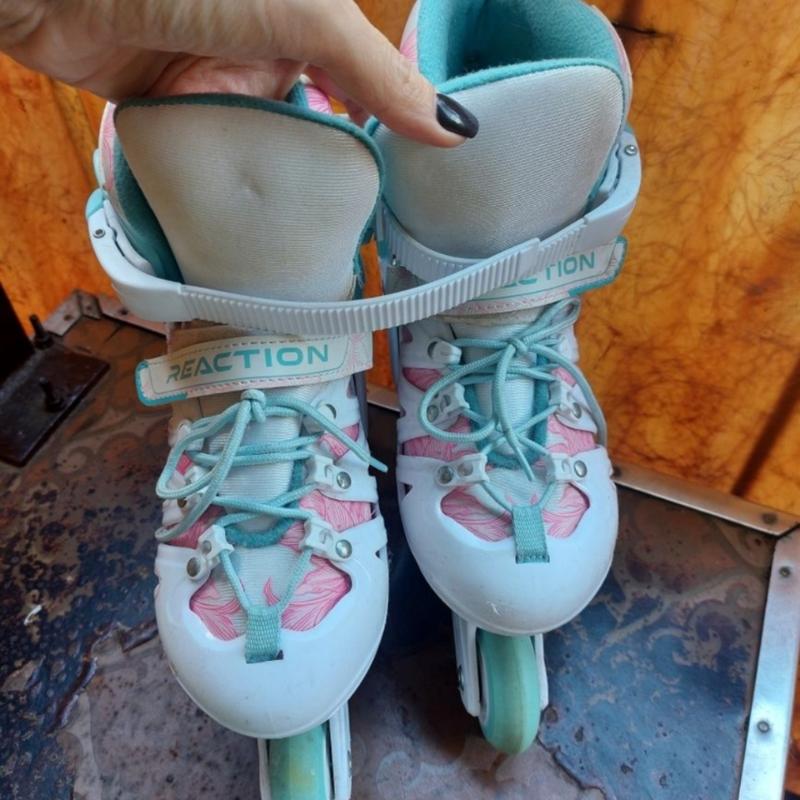 На роликах катались не долго, шлем новий, защитой пользовались где-то пару раз. 36-39 размер ролики + шлем + защита + сумка