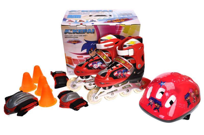 Ролики kepai 38-41р. червоні (алюмінієва рама, pu колеса, зі світлом, шолом+захист) f1-d1/...