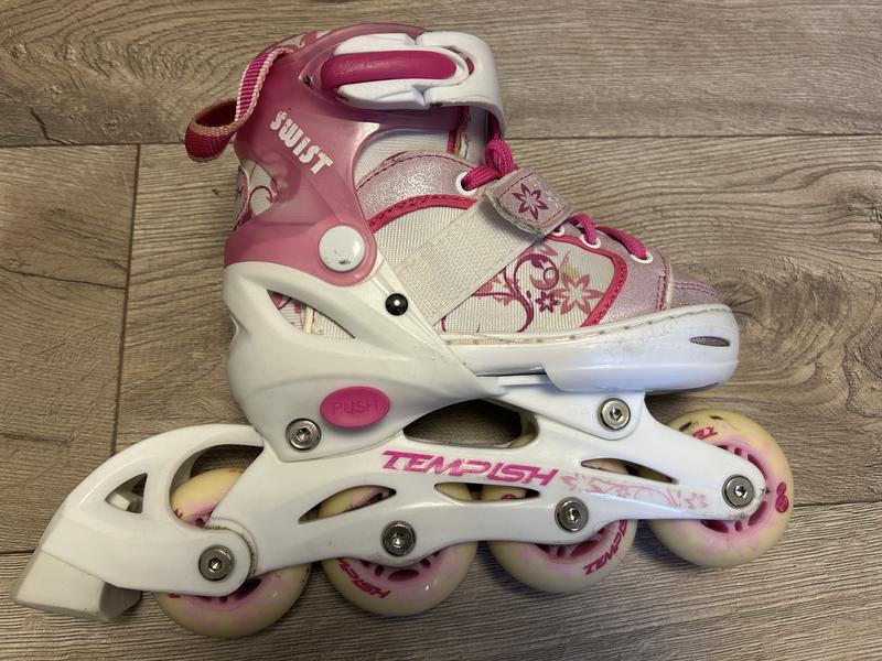 Удобные качественные детские ролики Tempish на размер 26-29, из нюансов желтые пятна, на фото видно.