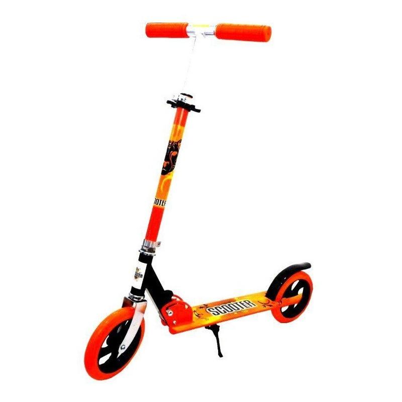 Самокат складной Scale Sport Scooter 460 Двухколесный самокат на больших 20см колесах оранжевого цвета- яркий и удобный самокат, оснащен мягкими полиуретановыми колесами, ножным тормозом и возможностью регулировки руля по высоте (3 положения от 75 до 99 см). Стильный дизайн привлечёт внимание всех окружающих и понравится Вашему ребёнку. Складной двухколесный самокат 460 имеет прочную конструкцию, 2 колеса обеспечивают максимальную маневренность. В самокате регулируется ручка что позволяет кататься детям постарше. Характеристика: Колеса: PU Материал самоката: алюминий, сталь Диаметр колес – 20 см. Ширина колеса - 3 см. Руль регулируется в 3 положениях: от 75 до 99 см. Ширина руля - 32 см. Диаметр ручек 4 см. Размеры подложки: длина 46 см, ширина -11 см, Высота от пола до подножки - 12 см. Ножной тормоз. Подставка. Складная конструкция. Размер коробки: 78*26*12 см. Максимальная нагрузка: 100 кг. Самокат оснащен боковой ножкой для вертикальной парковки